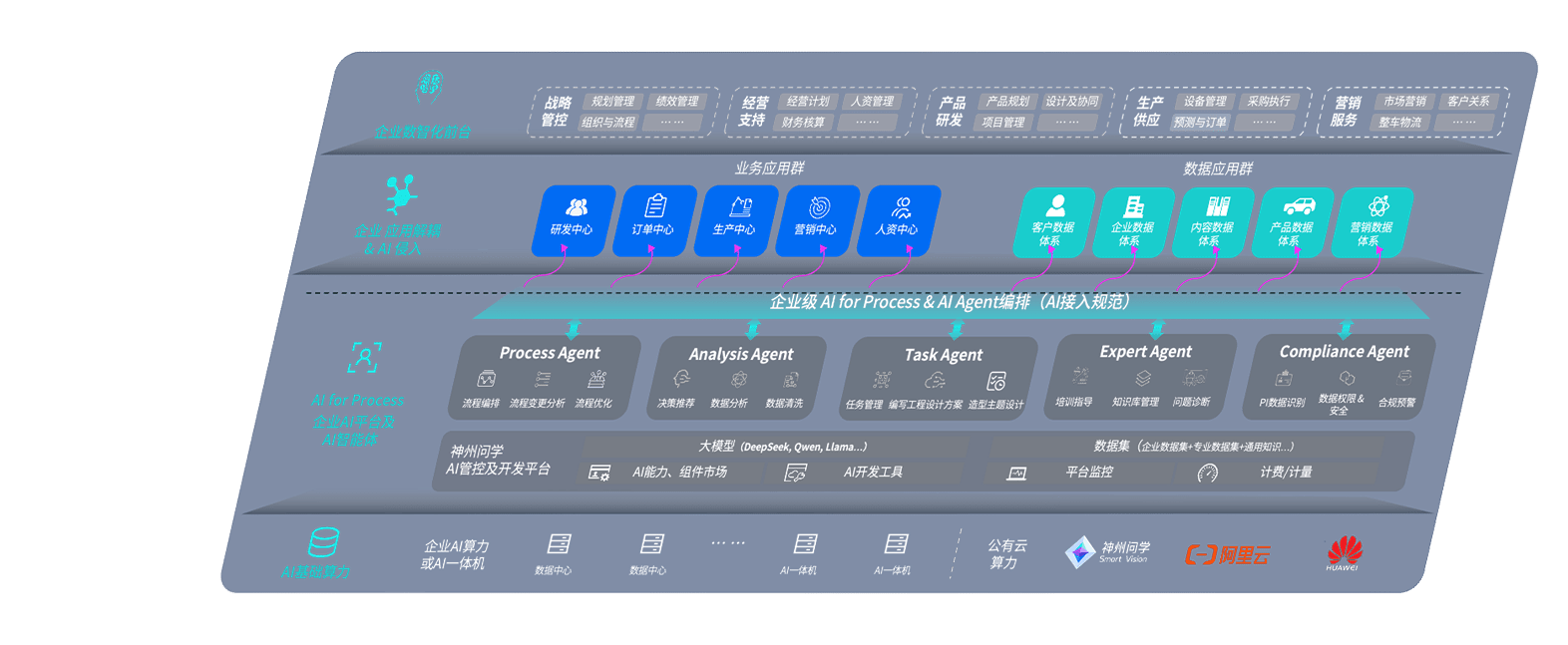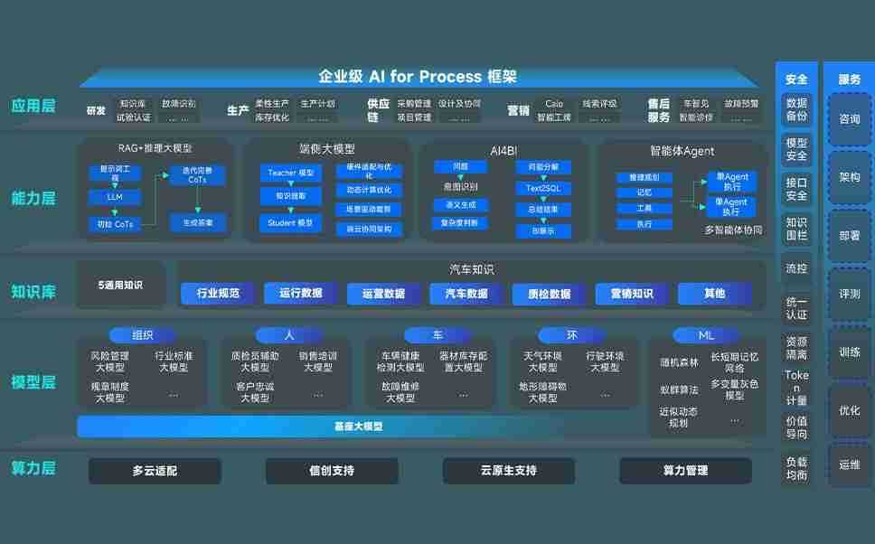 龙门国际问学智车解决方案是一套基于AI技术的汽车行业智能化系统,,覆盖从底层算力到顶层AI应用的全栈方案。。。方案由算力层、、、模型层和应用层组成:算力层,,方案支持多种一体机配置,,,,具备云端灵活部署、、、、多云适配以及动态优化计算资源的能力;模型层,,龙门国际问学平台版提供了企业级AI应用一站式构建与管理平台,,支持基于后训练强化技术的汽车企业专属模型的训练、、、评测和运营;应用层,,龙门国际问学DeepSeek版提供包括超级员工、、智能招采、、、智能营销、、智能客服、、、AI for BI等一系列解决方案,,,,可助力汽车行业实现数字化转型,,让管理更智能、、响应更敏捷。。。