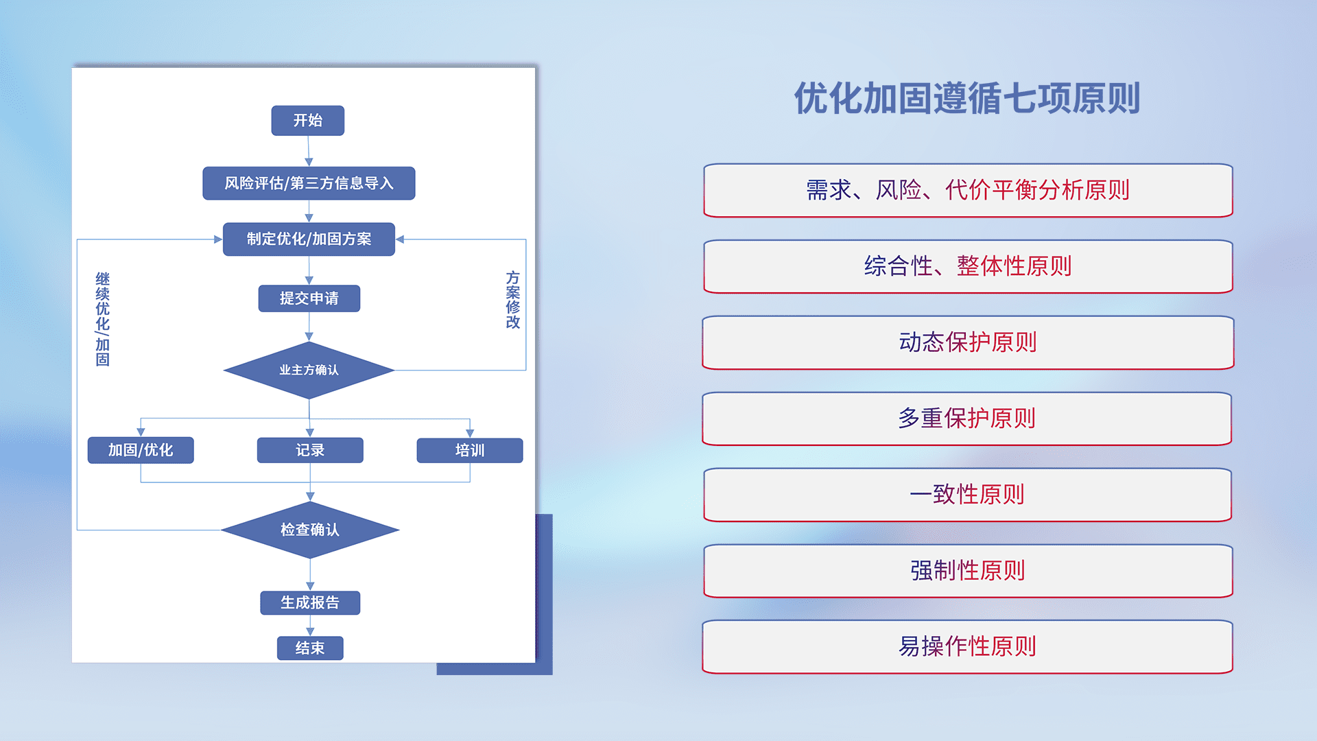 最大程度利用现有资产,,,对评估发现的问题进行封堵与整改,,防止漏洞被利用,,,,提升整体网络安全性,,为客户带来高标准的优化加固服务。。