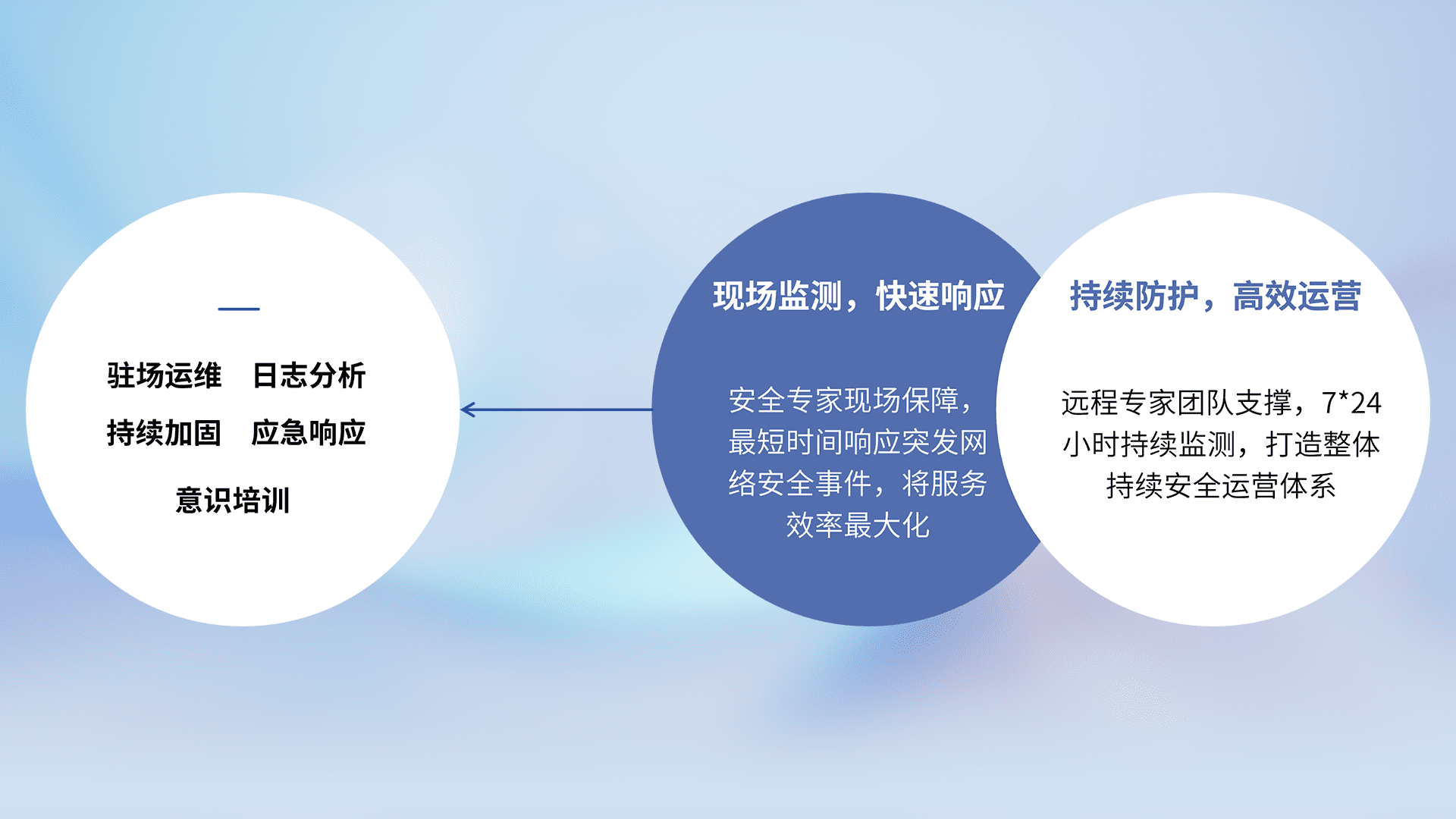 7X24小时持续监测安全事件,保持安全策略有效性,降低资产脆弱性风险,,,精准拦截黑客攻击,,,减少被黑客利用的机会,,,第一时间遏制,,,降低损失。。