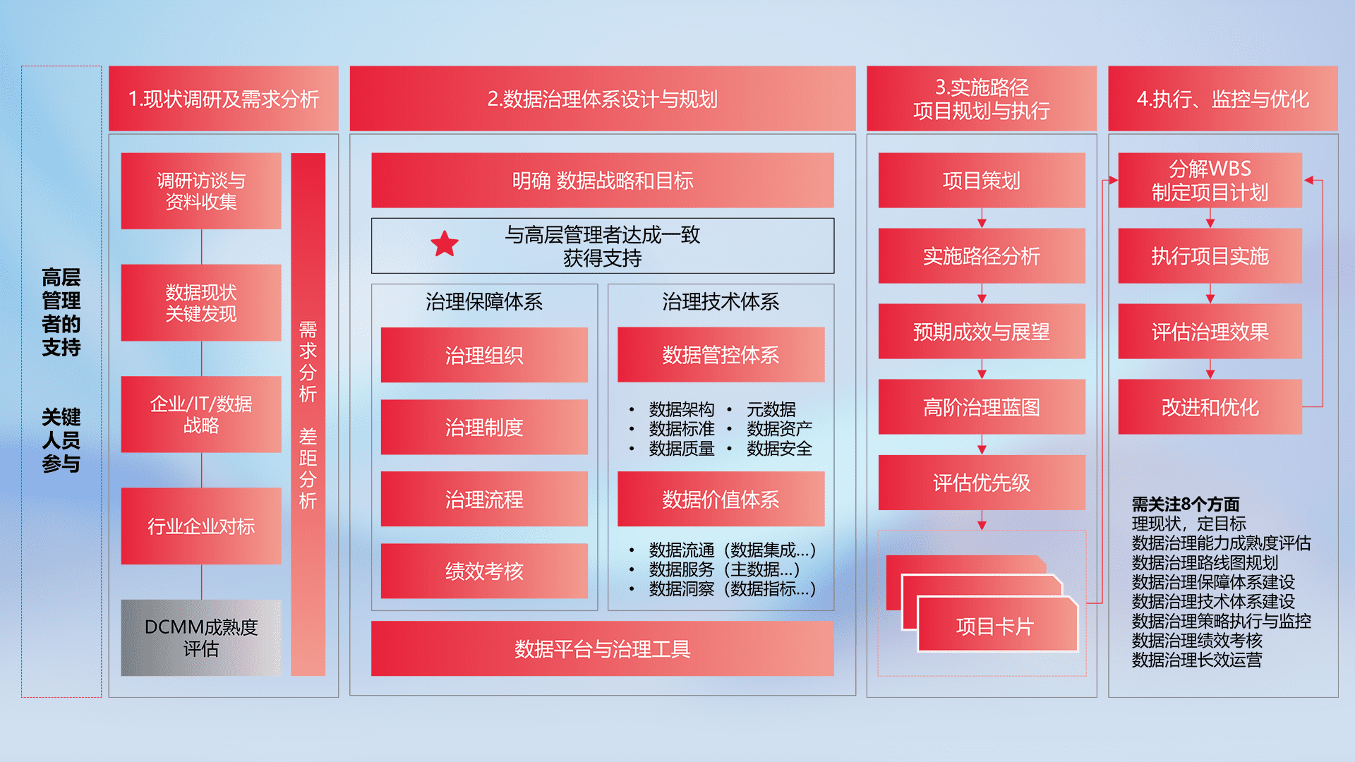 制定并执行统一的数据标准,,,,规范数据定义和格式,,消除冗余和不一致性,,,实现跨部门和跨系统的数据一致性,,,,为企业提供标准化的数据基础。。。。